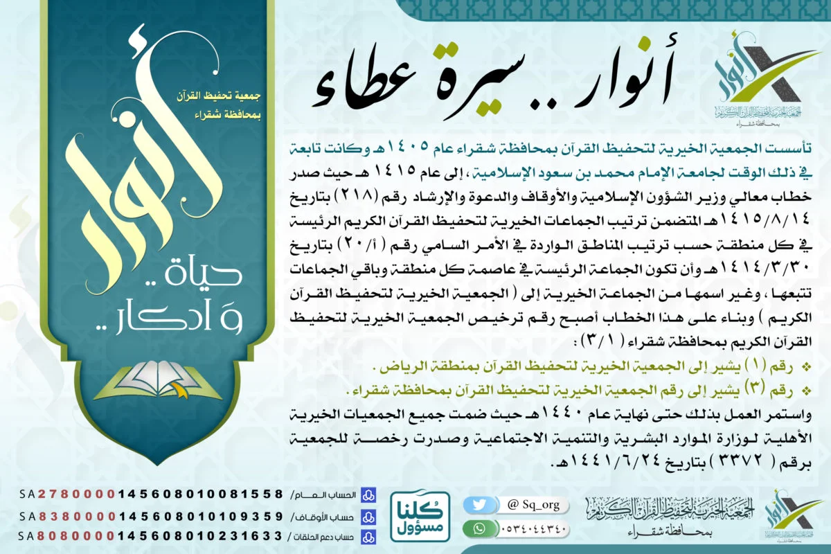 الجمعية الخيرية لتحفيظ القرآن الكريم بمحافظة شقراء (جمعية أنوار)
